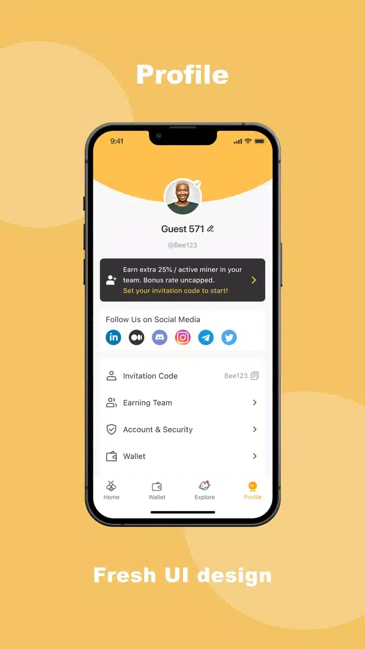 Users can boost their earning rate by referring new members to the network, emphasizing the importance of community growth and engagement in the Bee ecosystem.