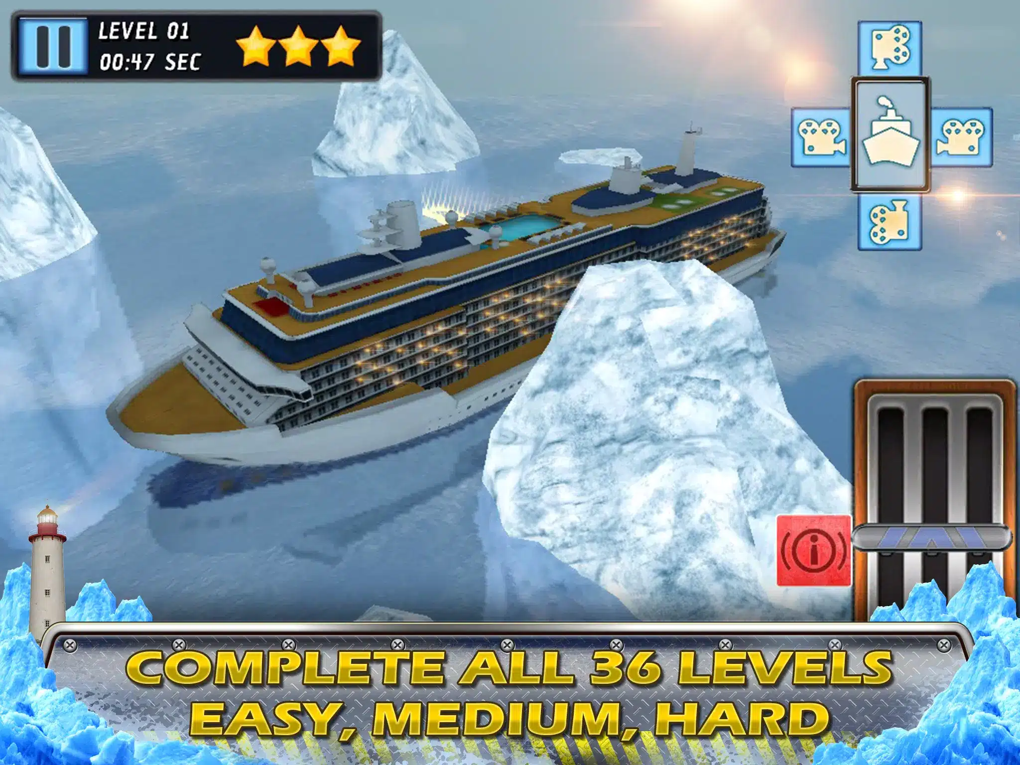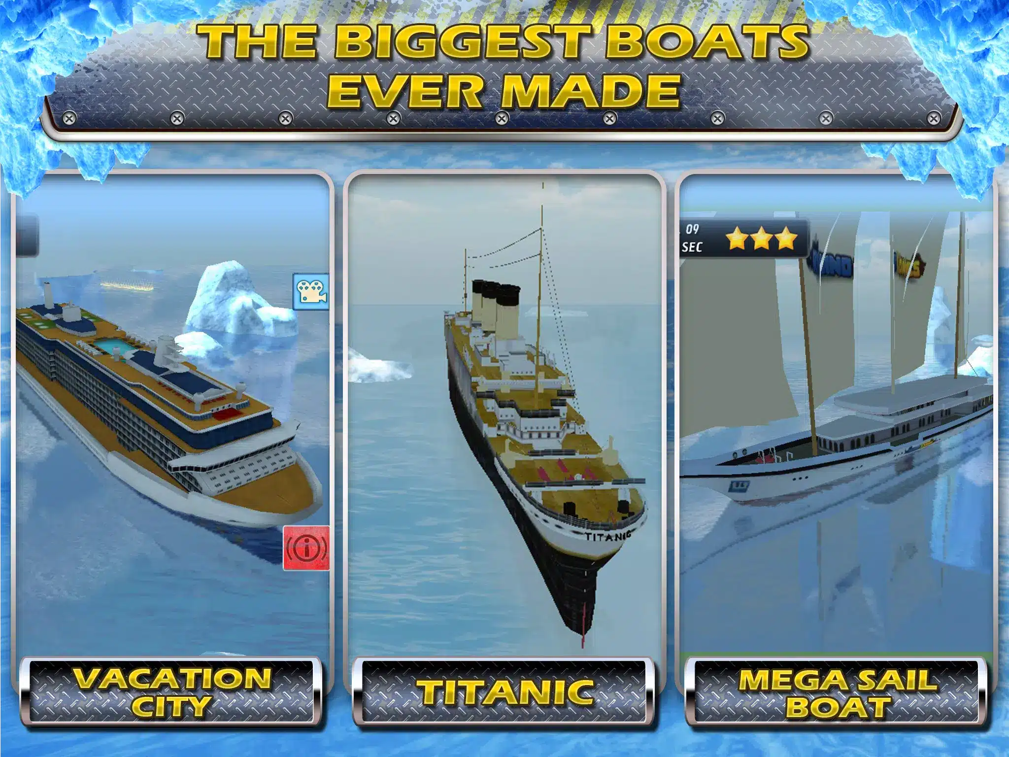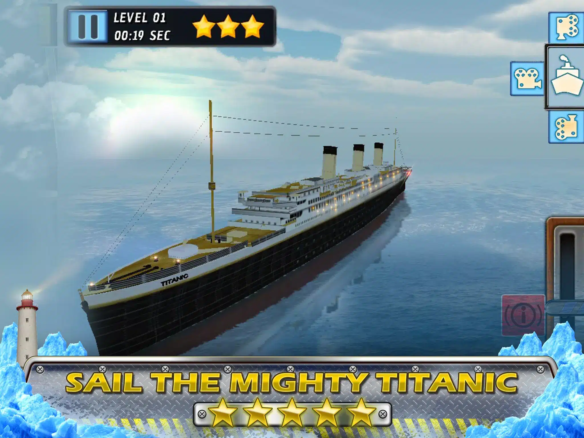 Experience the authentic ship simulator by playing with three colossal class vessels and ensuring their safety from sinking!
