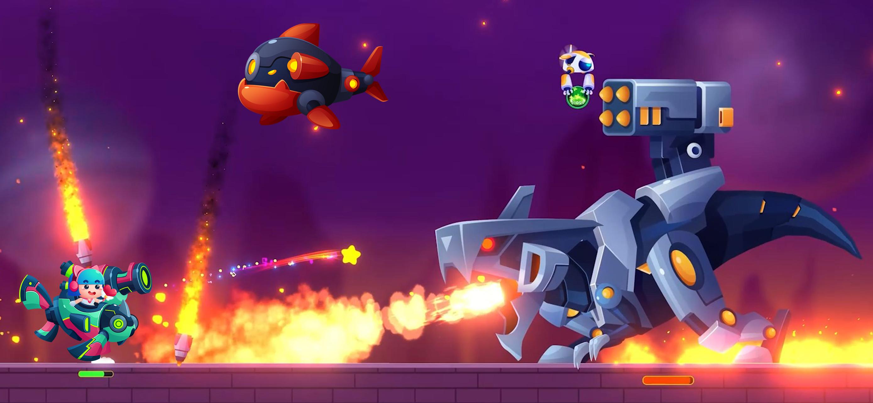 Players can choose from a variety of combat robots, each with unique designs and skills. Shortcut buttons let you switch weapons, activate shields, or launch missiles instantly during intense fights.