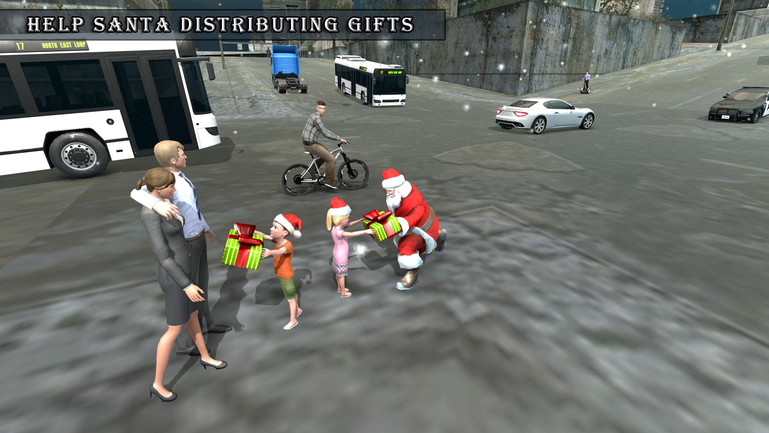 Players take control of Santa himself, equipped with unique abilities to drive, jump, and interact with the city. Shortcut buttons allow quick access to cars, weapons, and special in-game actions to complete missions faster.