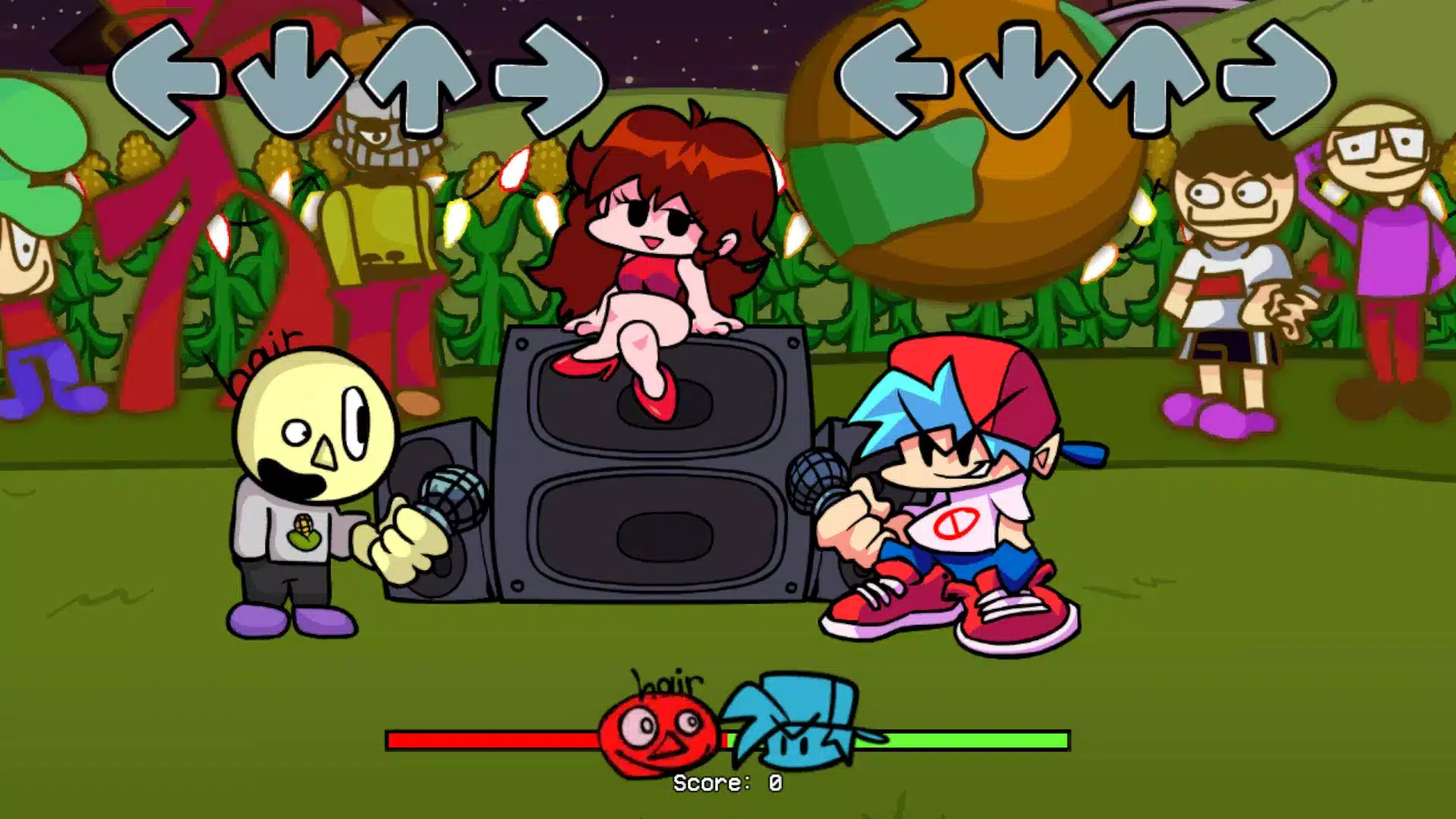 They must tap the boxes on the screen in synchronization with the song’s rhythm. The left-facing arrows represent the opponents, while the right-facing arrows belong to the player. It’s crucial to avoid depleting all of your health. Get ready to groove on a Friday night and show your funky skills!