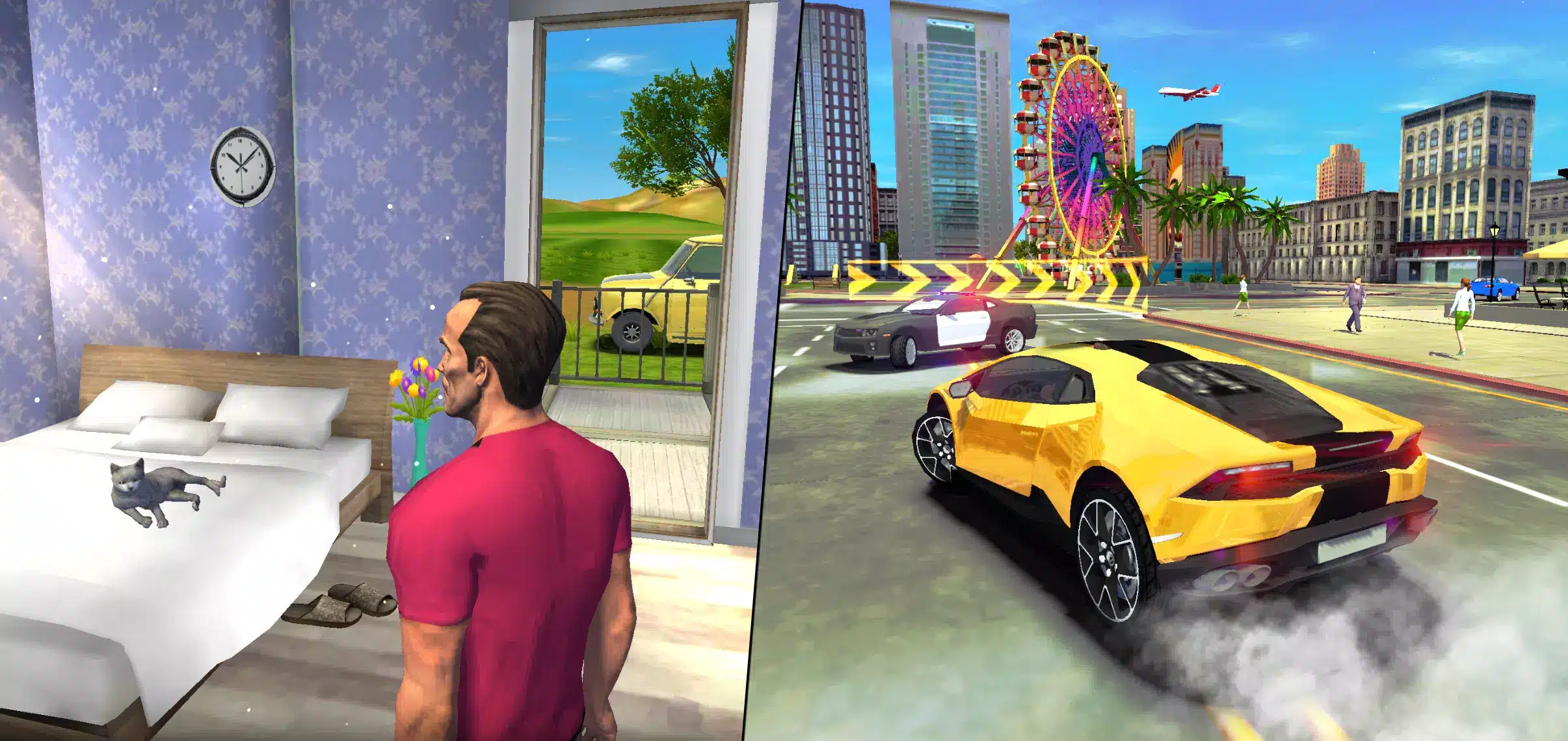 In the virtual realm, one has the ability to operate any vehicle amidst the traffic, head home, and more. The expansive possibilities extend to navigating to a pub, a perfume shop, or one’s private residence where a spouse eagerly anticipates their arrival. The player possesses a navigational map guiding them to various destinations. A park is present, offering the opportunity for a leisurely stroll. The game encompasses a sophisticated traffic system, a fleet of stunning cars, and boasts exceptional graphics, expansive streets, and realistic human physics, defining it as an open-world gaming experience.