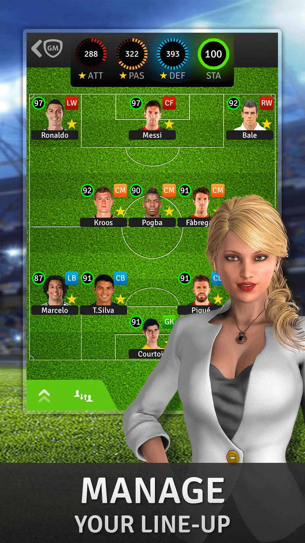 Can they mold the world’s best players? Golden Manager features top players from elite squads worldwide, including the Premier League: FC Barcelona, Real Madrid, Chelsea, Arsenal, Liverpool, Manchester City, Manchester United, and many more. Sign pro footballers such as Messi, Cristiano Ronaldo, Pogba, Neymar, Diego Costa, Kevin de Bruyne, or Claudio Bravo to construct their dream team! Develop a personalized lineup by recruiting favorite goalkeepers, defenders, midfielders, and strikers, as well as free-kick and penalty specialists.