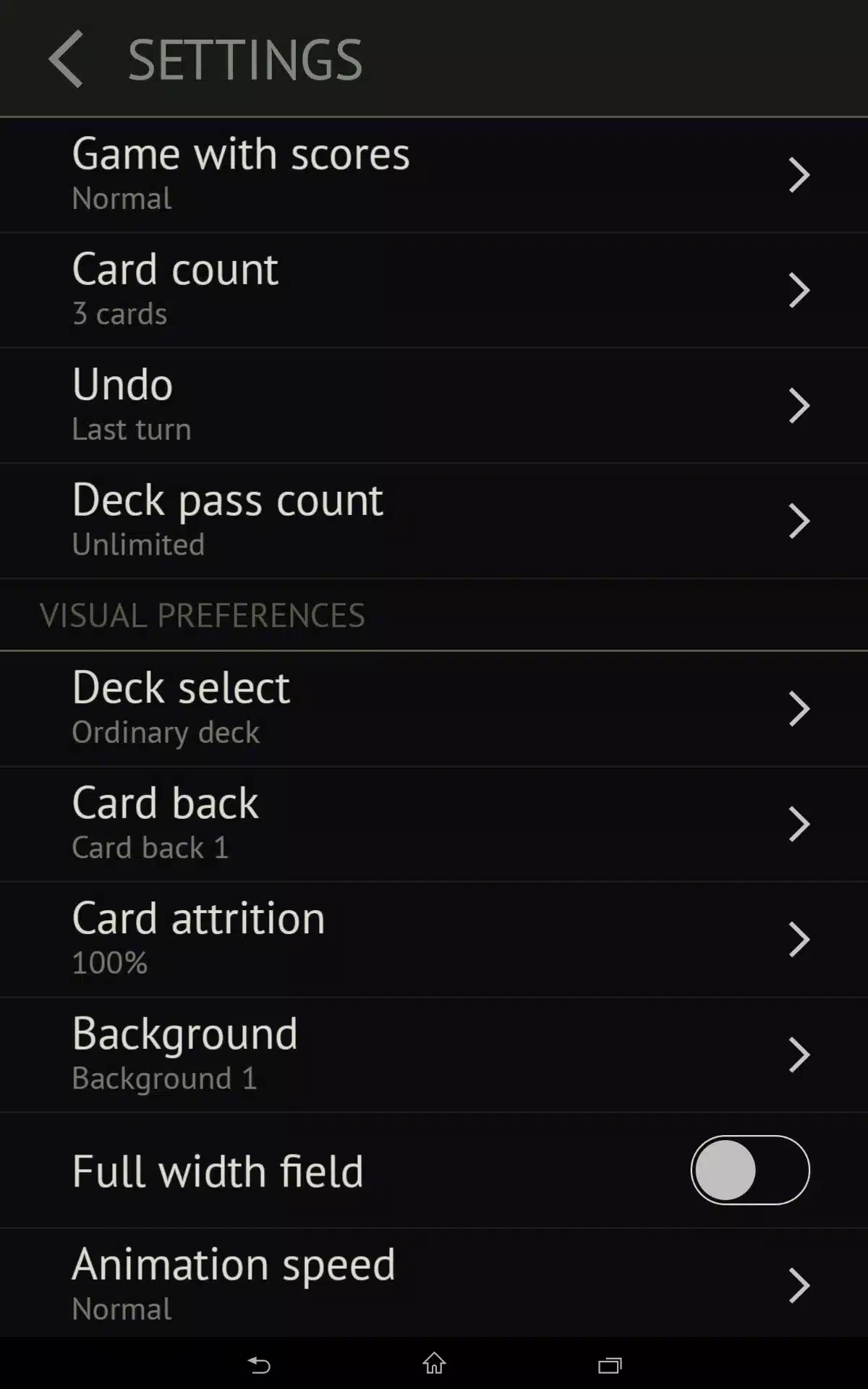 Customization is another key feature of this Klondike Solitaire game. The Settings menu allows players to modify various aspects of the game to suit their preferences. They can change the score calculation method, opt for soundless gameplay, select their preferred undo type, and even switch to a left-handed mode for a unique challenge. For those seeking a more demanding experience, the game’s difficulty level can be adjusted to provide a greater challenge.