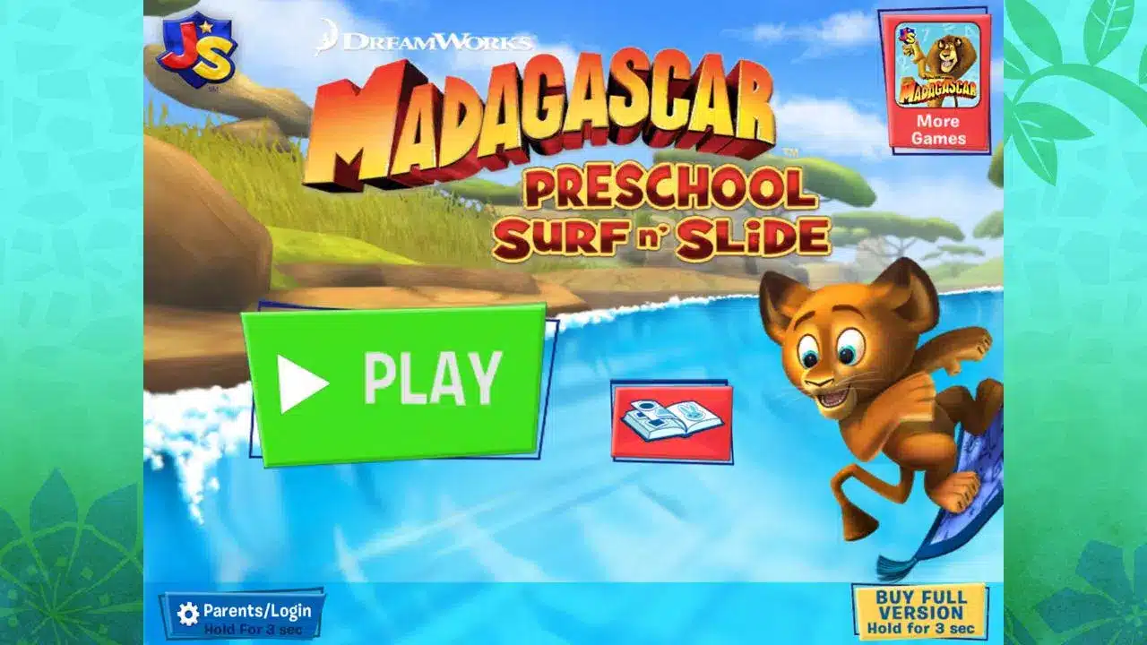 Please Note: Madagascar: Preschool Surf n’ Slide FREE is a complimentary version offering limited gameplay and content. For full access to the educational benefits, an upgrade to the full version is available for purchase. Purchases can be restricted in the device’s settings.