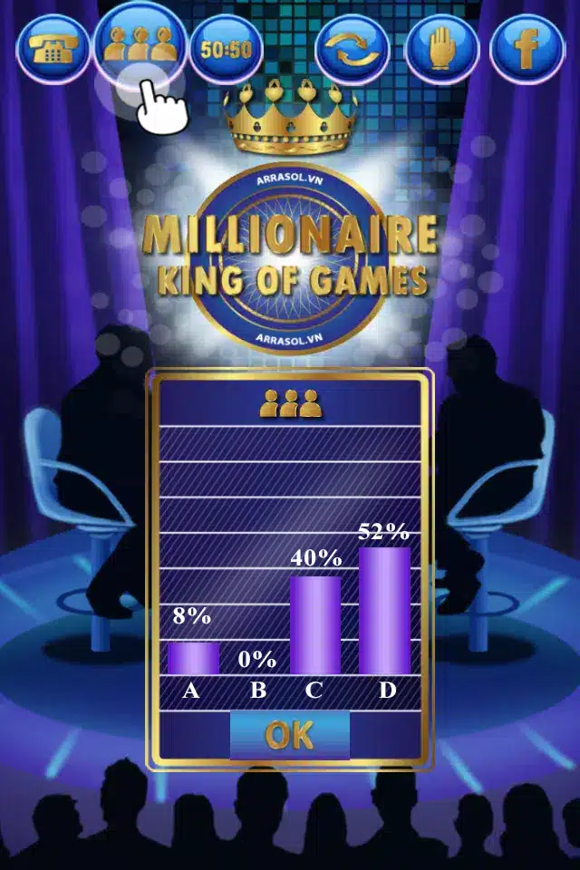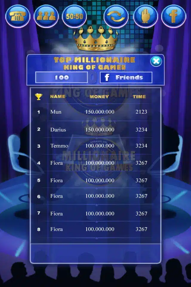 - Unique to “Millionaire-King of Games,” the latest feature enables players to “Ask a friend for help in answering difficult questions via Facebook.”