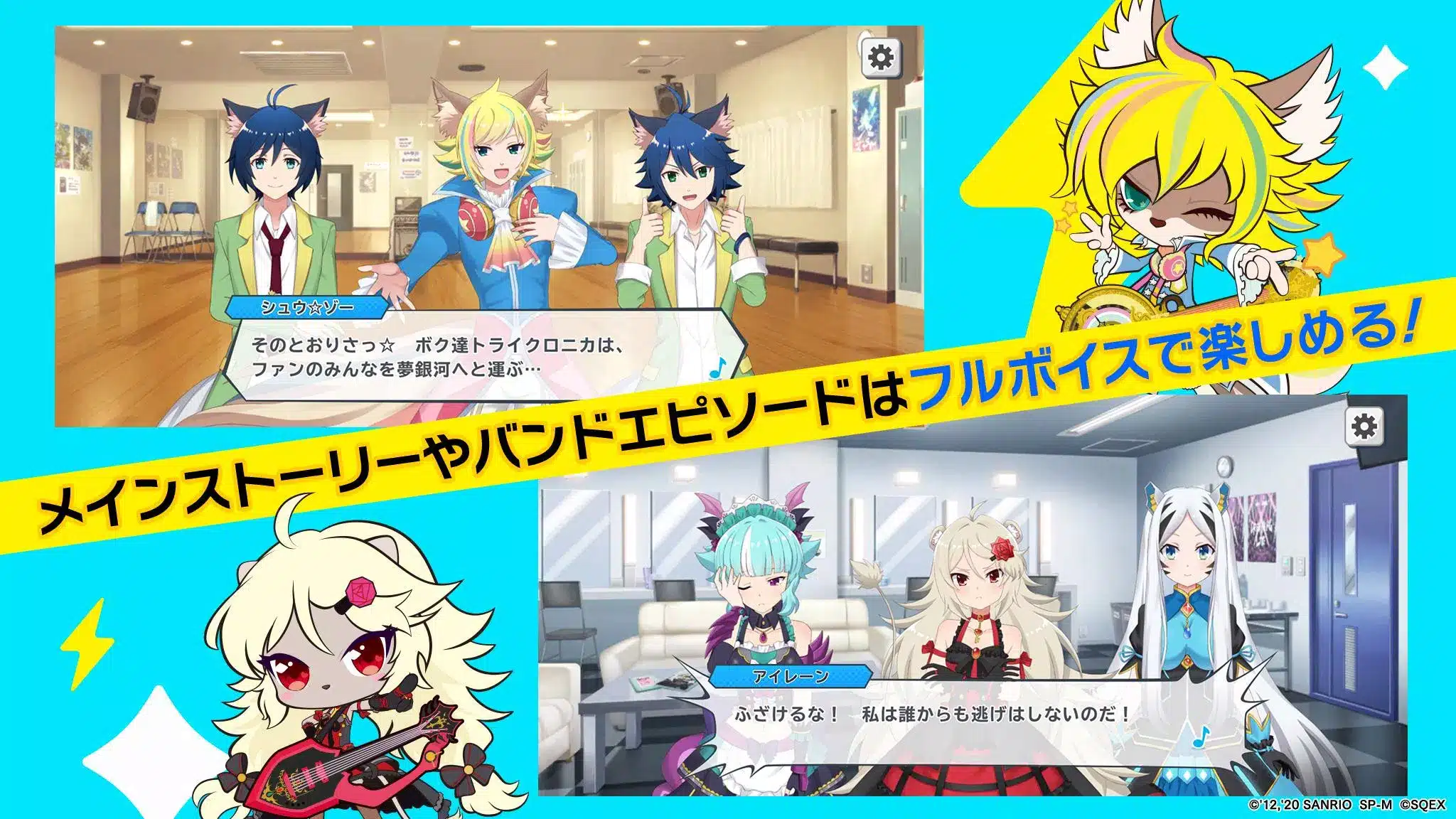 Experience the rich world of SHOW BY ROCK!!! with full voice acting and witness charming 2D character animations that respond to your every move!