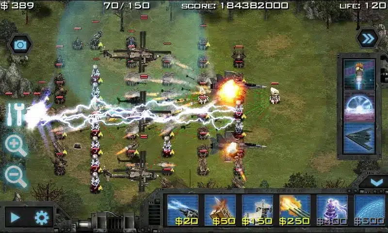 - 9 varied turret types, including gatling gun, tesla coil, air-defense guns, and the EMP generator.