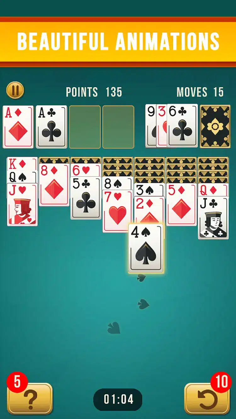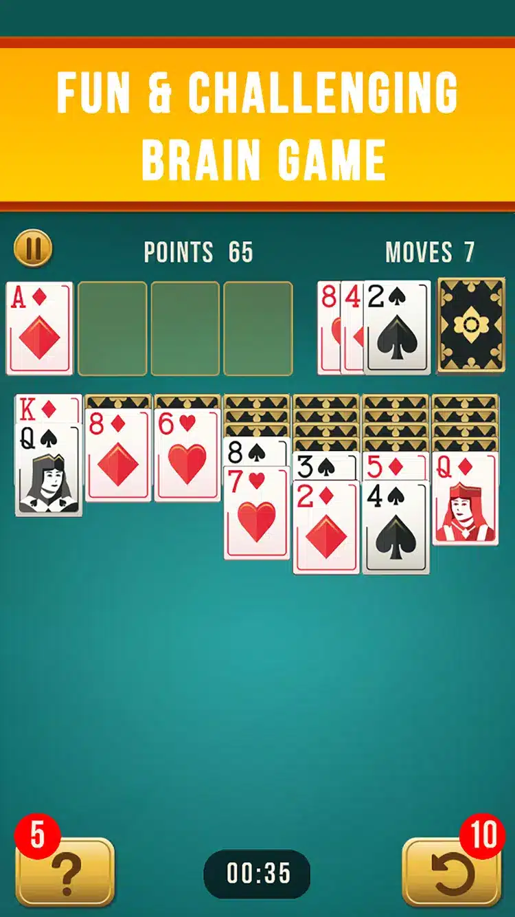 • Play with the classic touch controls, either by tapping or dragging and dropping cards.