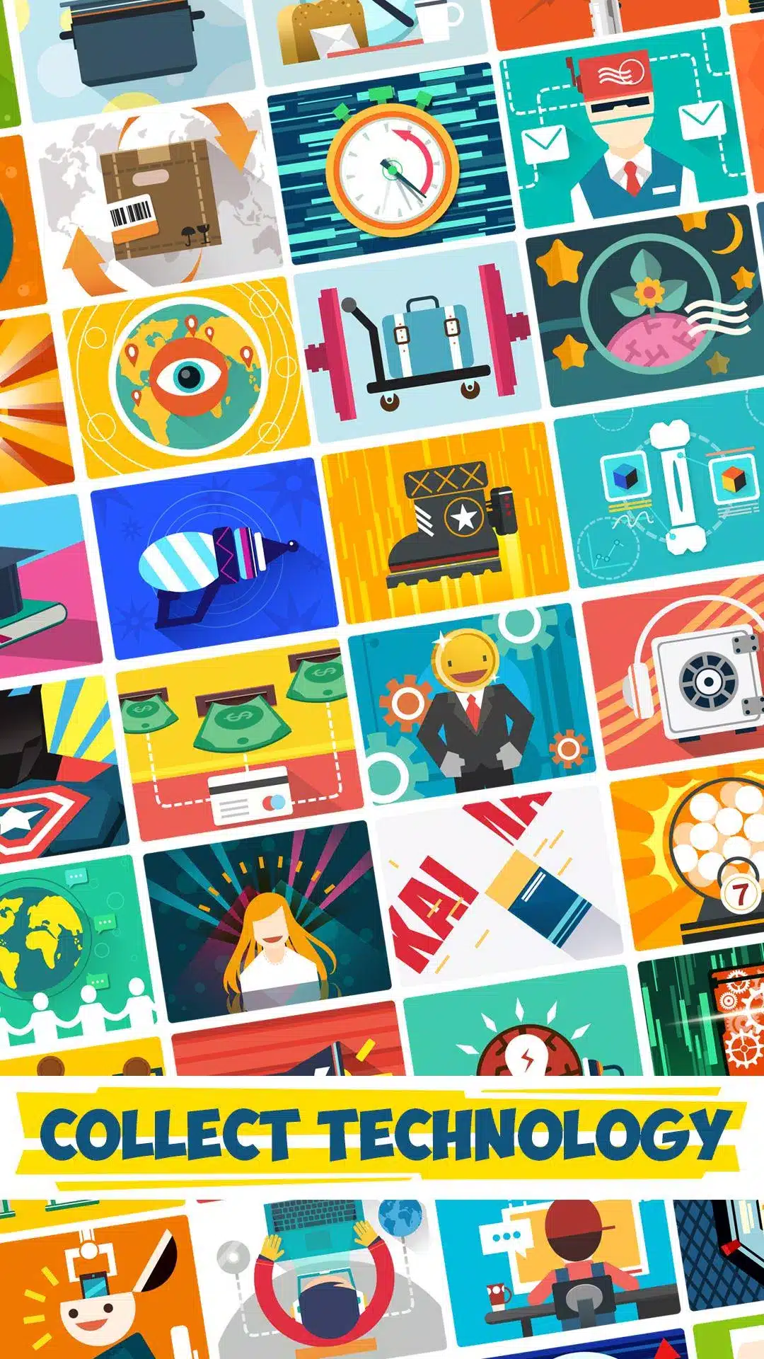 They must tap to generate wealth seemingly out of nowhere and accumulate sufficient funds to allocate in various enterprises. Mold a diverse conglomerate by constructing and enhancing their businesses. Fear not, as the era we inhabit is the 35th century. Opportunities to invest in astonishing technologies, such as the anti-gravity fork, luggage shrink ray, and holographic window view, await!