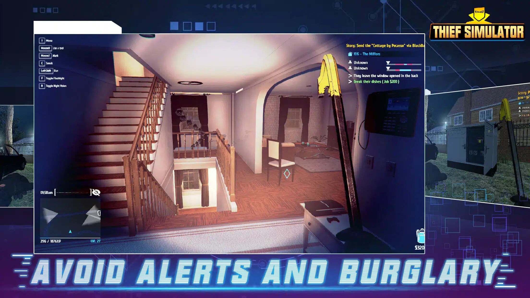 In the realm of Thief Simulator, players are urged to emulate the actions of a genuine thief. The game invites individuals to immerse themselves in the thieving experience and strive to excel as the ultimate thief. The objective is to meticulously gather intelligence, execute stealthy thefts, and trade stolen items to procure state-of-the-art equipment. As one pursues their goals, they must observe and accumulate vital information essential for successful burglaries. Embrace the challenges, target the most securely guarded residences, invest in cutting-edge anti-theft tools, master innovative thieving techniques, vend pilfered items to pedestrians discreetly, and navigate the streets while evading excessive attention from law enforcement. The mission is to replicate every aspect of a genuine thief’s endeavors within the captivating realm of Thief Simulator.
