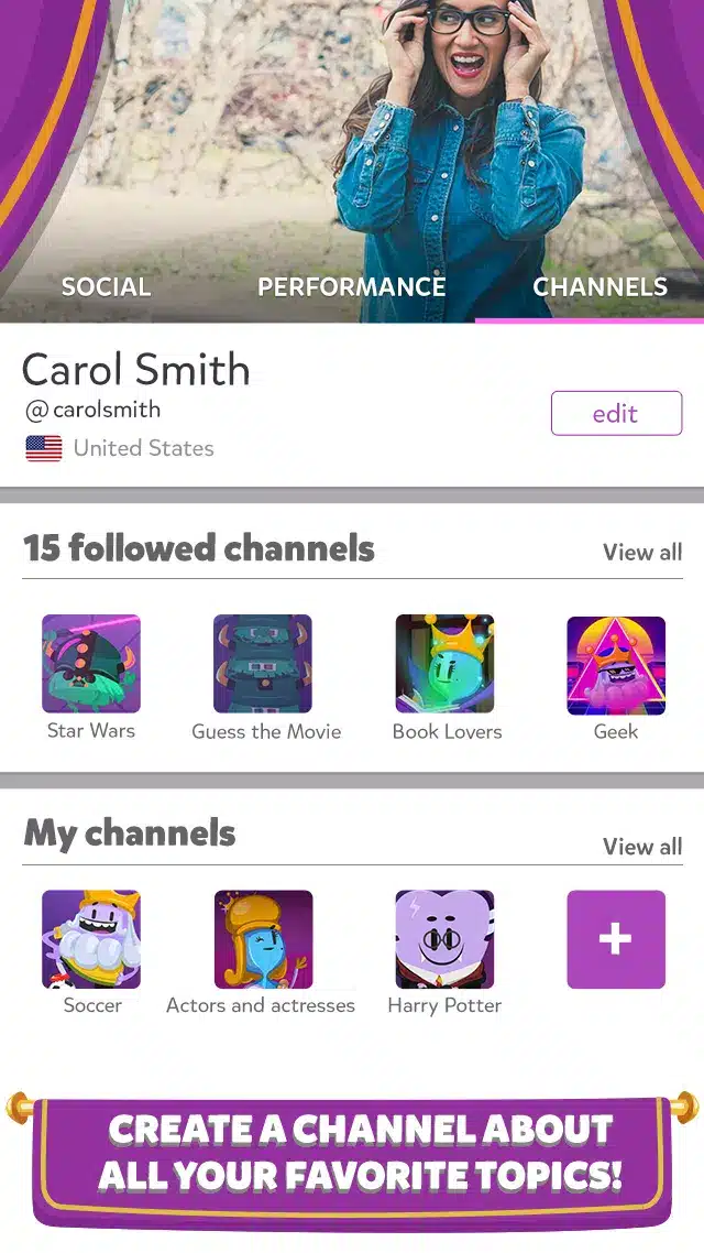 Create trivia channels based on individual interests. Whether a fan of hockey, a Mexican cuisine expert, or a binge-watcher of a series, players can test their friends’ knowledge in various areas.