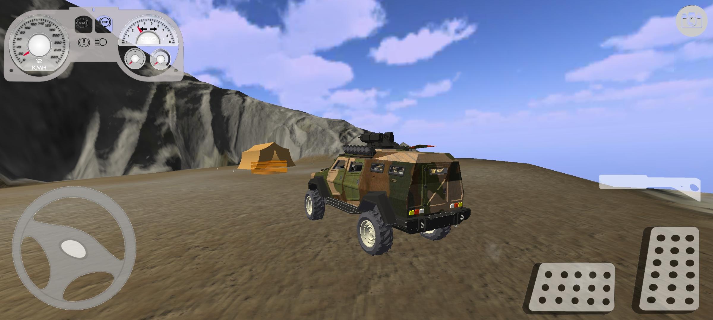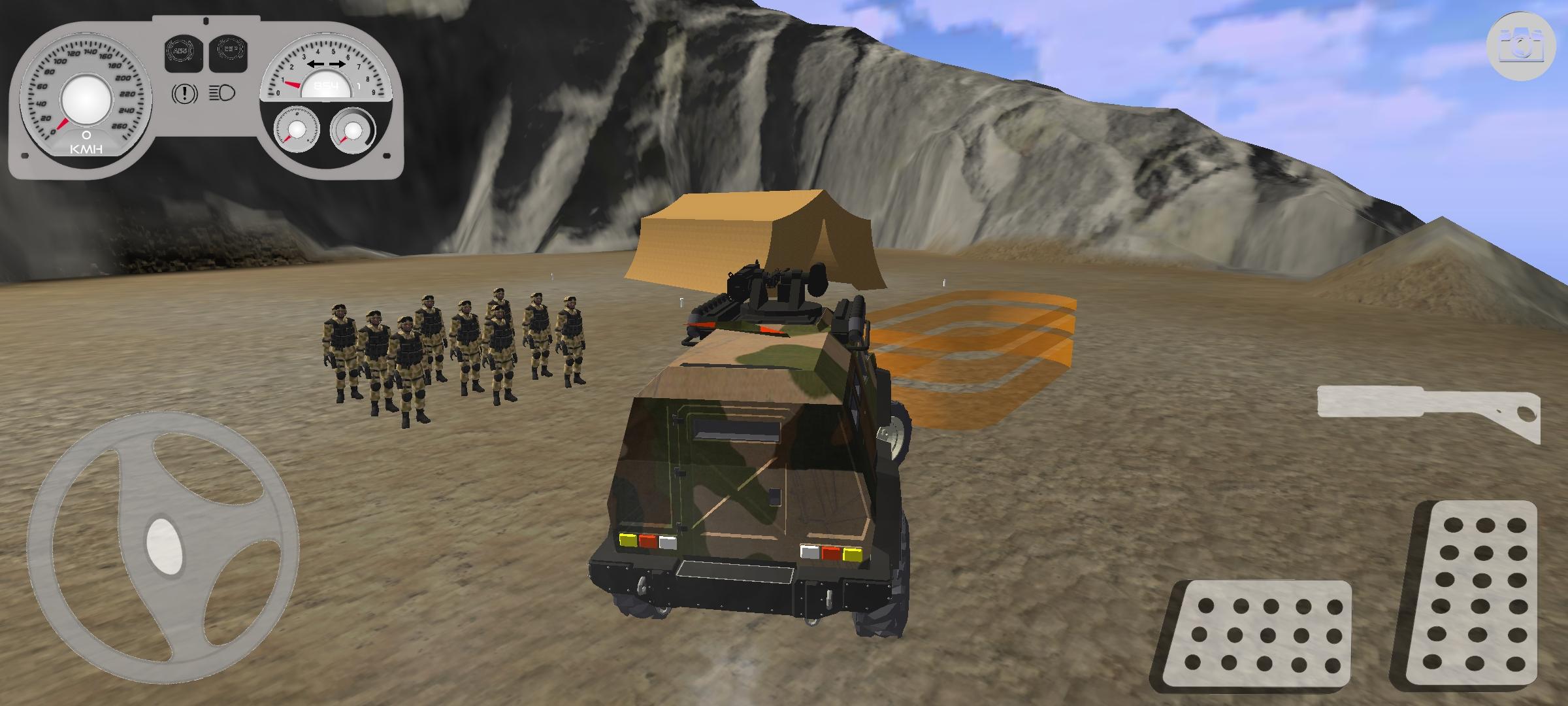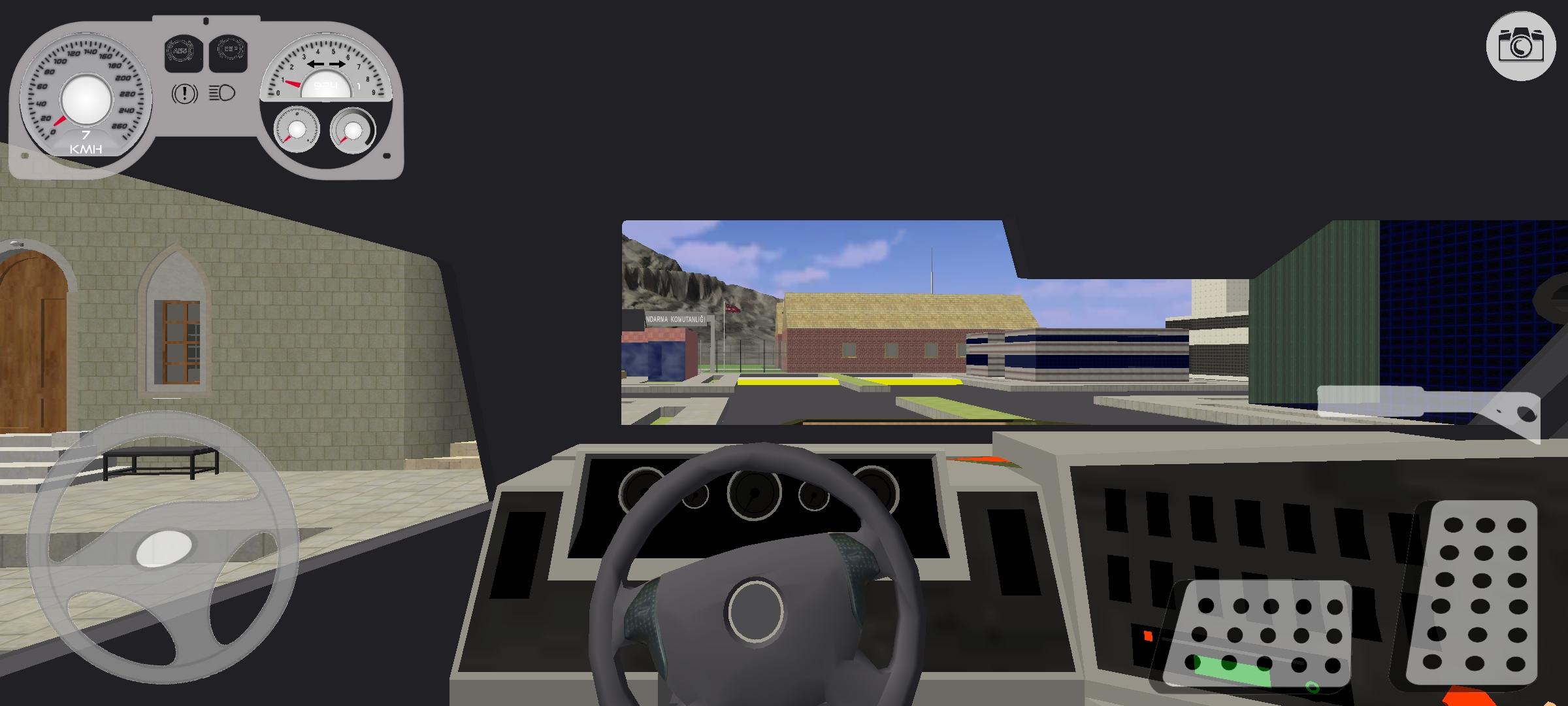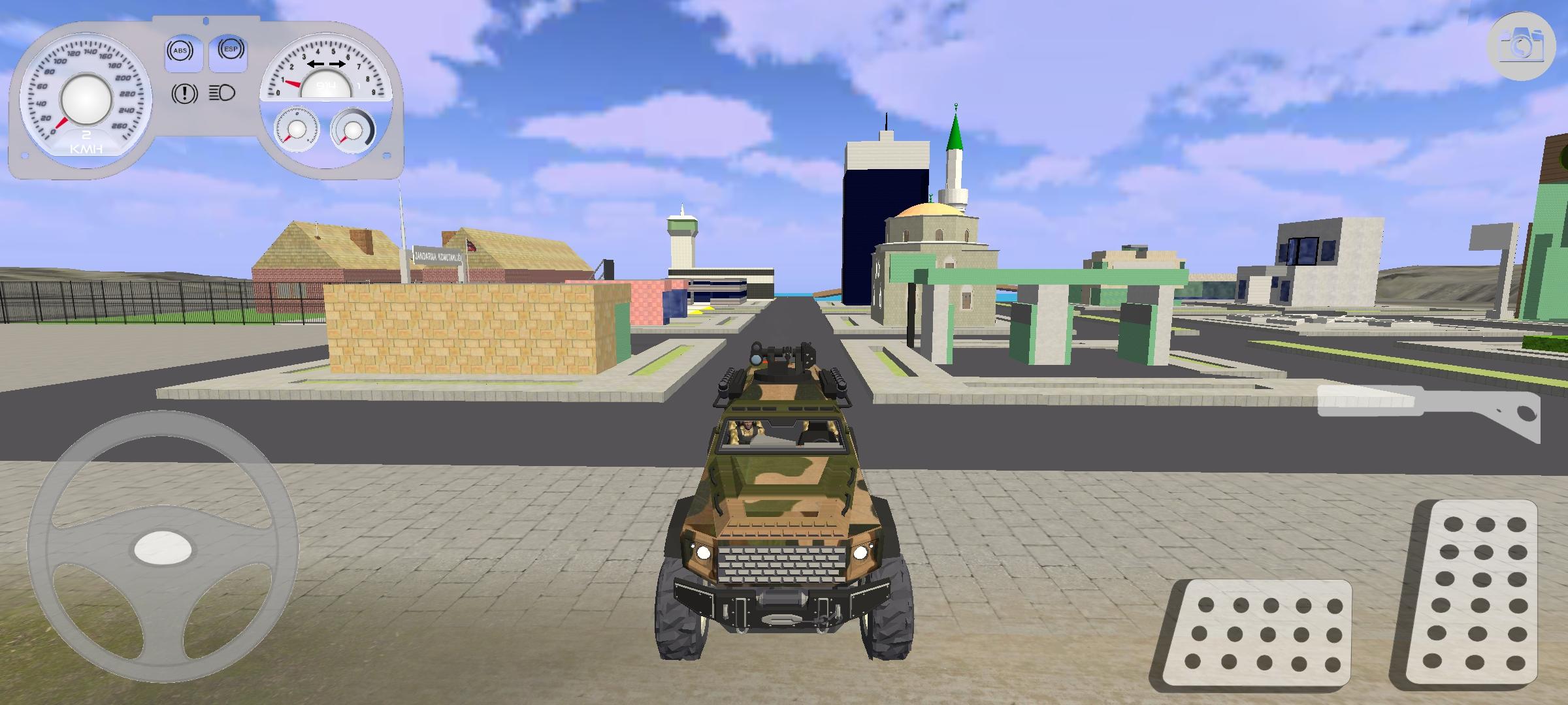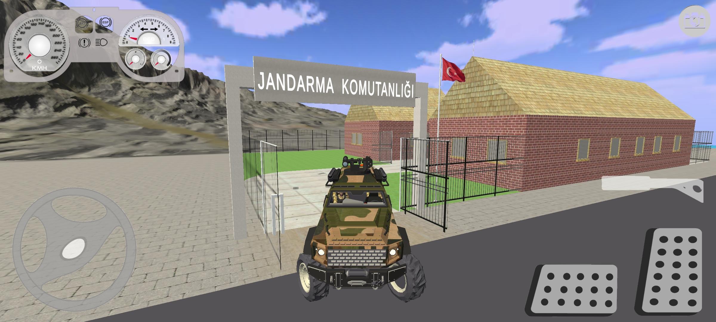 Players operate as a Turkish army driver with access to multiple transport vehicles. Quick-access buttons allow you to switch camera views, activate headlights, or use the map and GPS for navigation.
