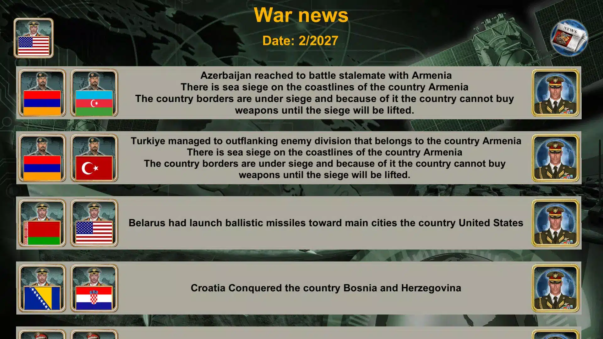- Real-World Conditions: Navigate contemporary world events and country standings.