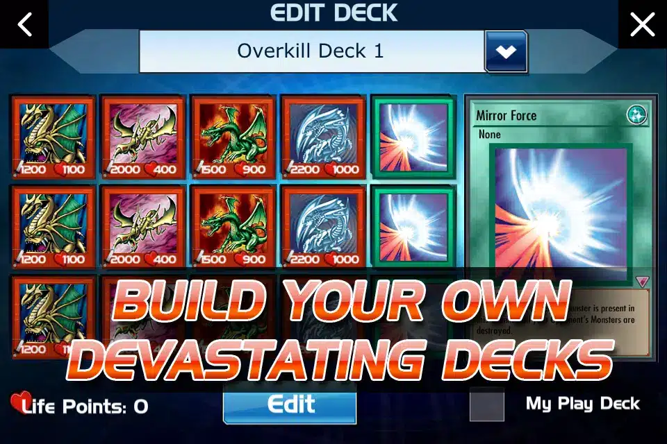- Construct a unique deck from a diverse selection of over 500 Yu-Gi-Oh! cards.
